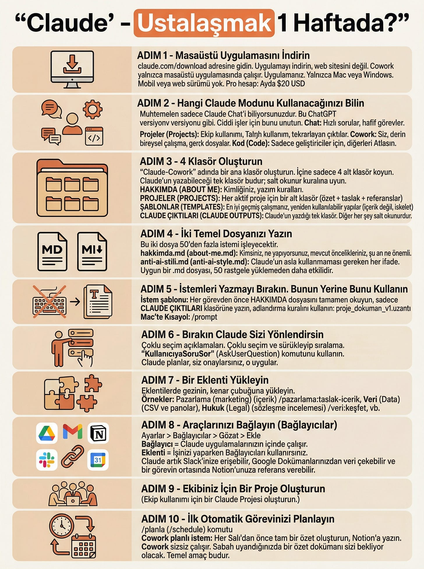 Aynı Cowork oturumunda (hakkımda dosyasından sonra devam edin) şu prompt’u yapıştırın: