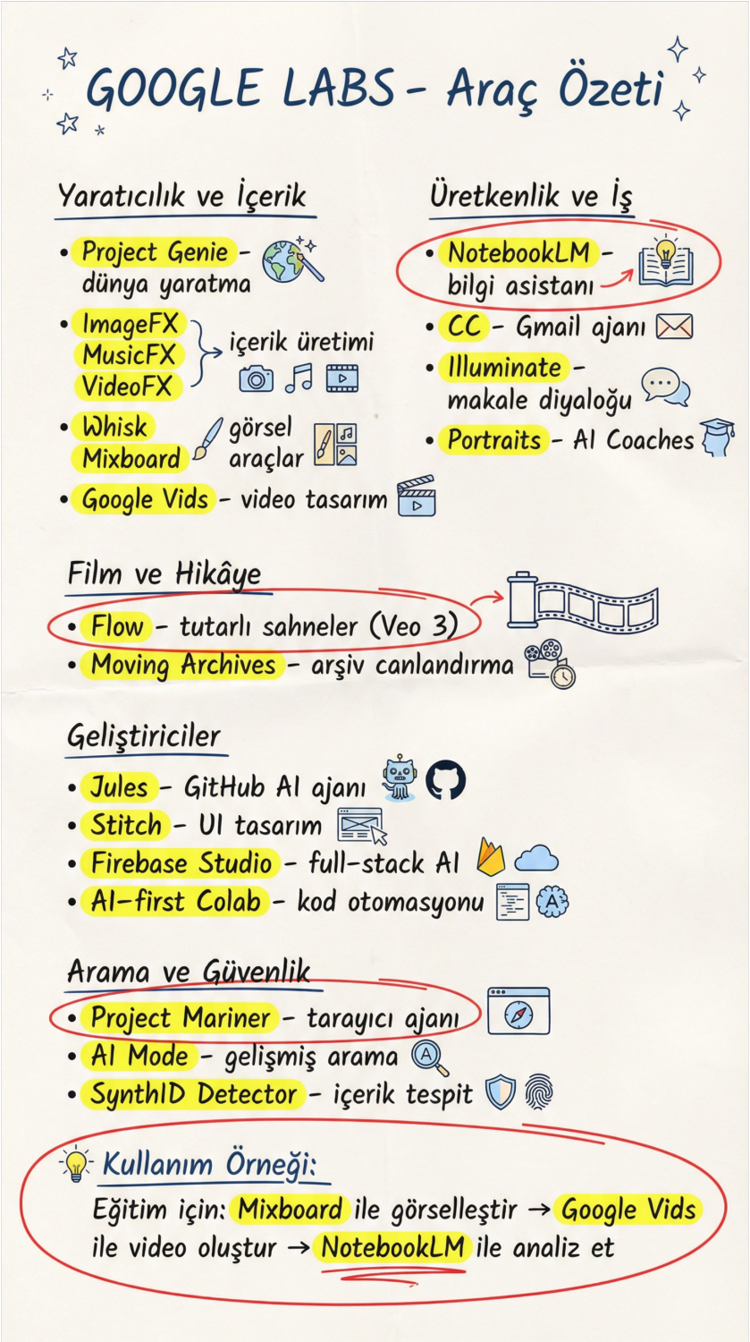 #GoogleLabs #AITools #YapayZeka #Ücretsiz #GoogleAI #Verimlilik #NotebookLM #ImageFX #MusicFX #Flow #Gelecek #Teknoloji #DigitalTransformation #AITürkiye